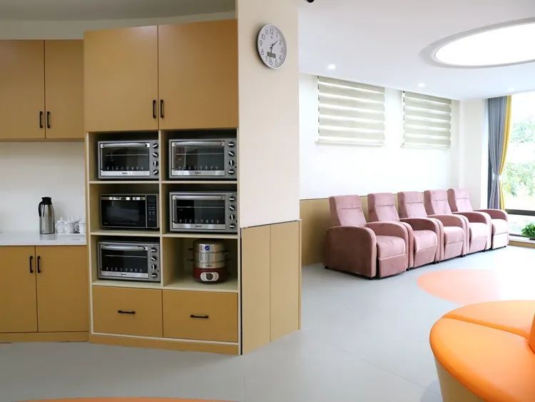 此外,服务保障区内还设有老年人助餐点,可为周边老年人提供老年餐助餐服务。生活服务区内摆放了躺椅,方便老年人休憩。