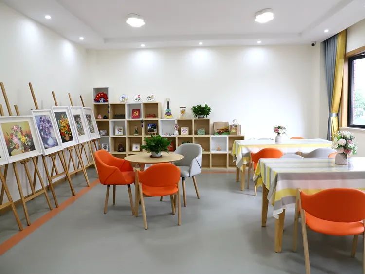 二楼是公共活动区。“这里会定期组织老年居民喜爱的各类烘焙、手工制作、阅读、绘画等活动。”中心负责人陶莺秋介绍,日间照护中心作为专业化技能培训下沉的重要点位,还会邀请社区里的能人巧匠来“授课”,吸引周边老年人前来活动。
