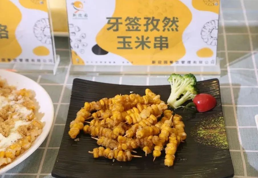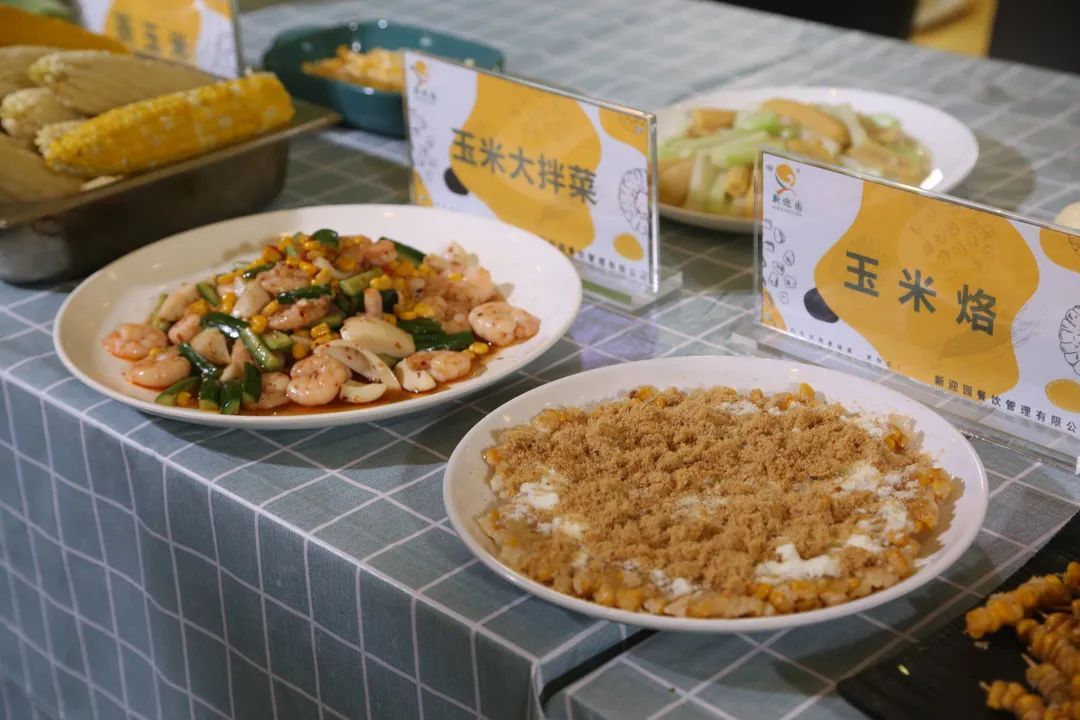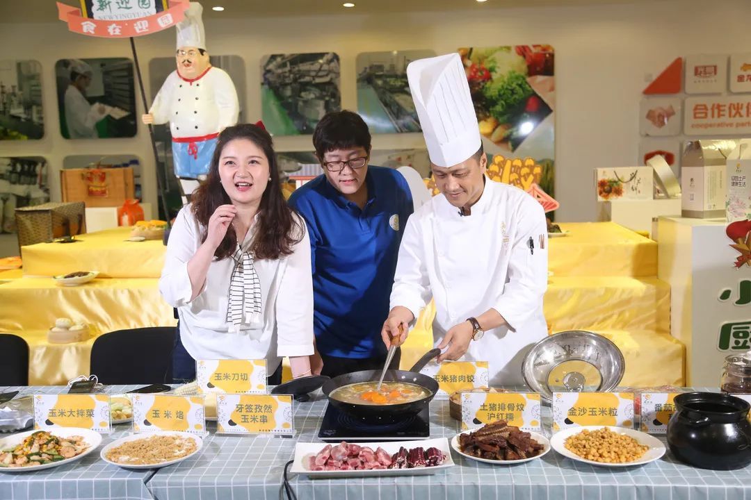牙签孜然玉米串、金沙玉米粒、土著排骨炆沪红糯……一款款与玉米相关的新款菜肴经过大厨的加工,呈现在直播间现场,吸引了不少网友关注收看。