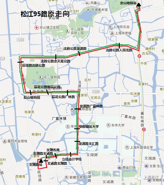 原走向:(上行)自佘山地铁站起经古楼公路、嘉松公路、沈砖公路、辰塔路、辰花公路、龙源路、文翔路、文涵路、新松江路、辰塔路、文翔路至文翔路站。(下行)自文翔路站起经文翔路、龙源路、辰花公路、辰塔路、沈砖公路、嘉松公路、古楼公路至佘山地铁站。