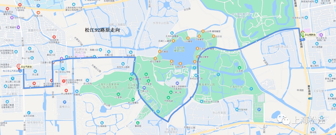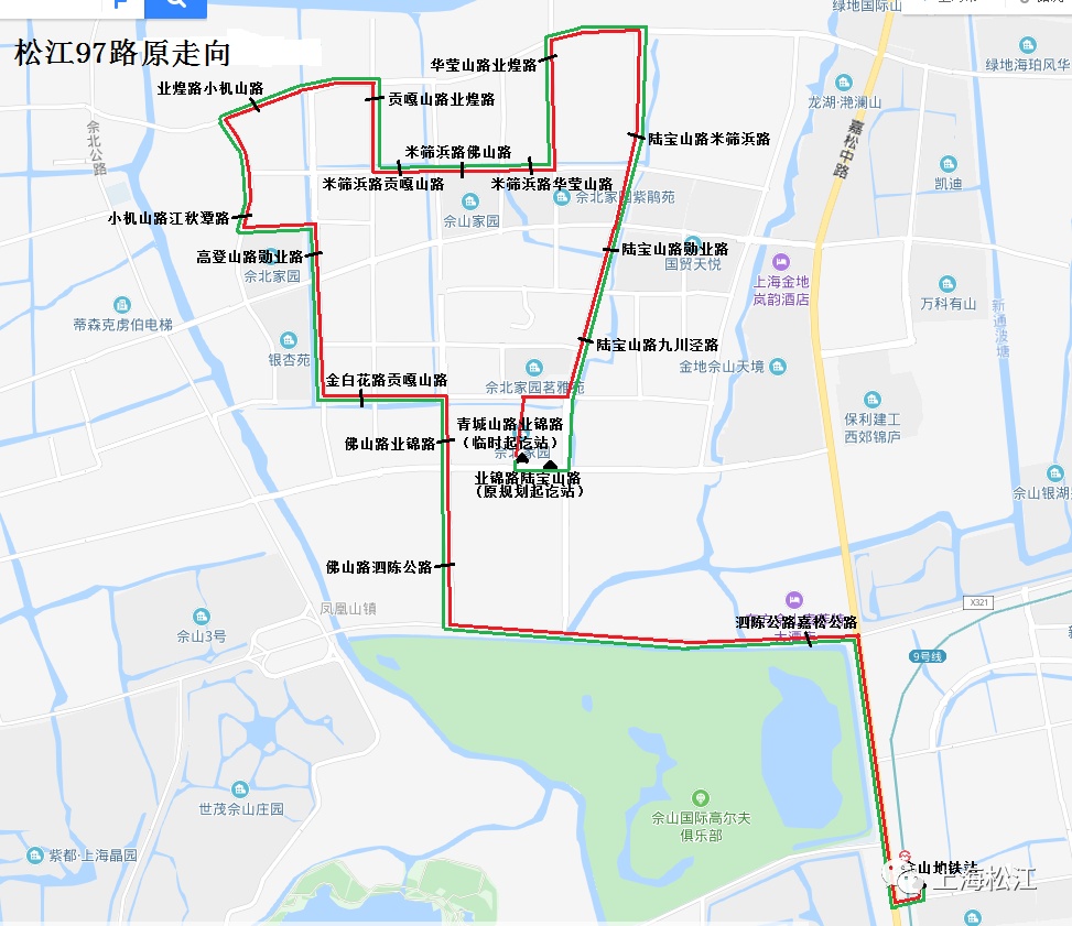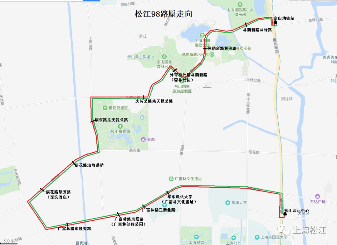 原走向:自佘山地铁站起经林荫大道、外青松公路、佘北公路、桃源路、佘苑路、佘新路、千新公路至佘山汽车站。