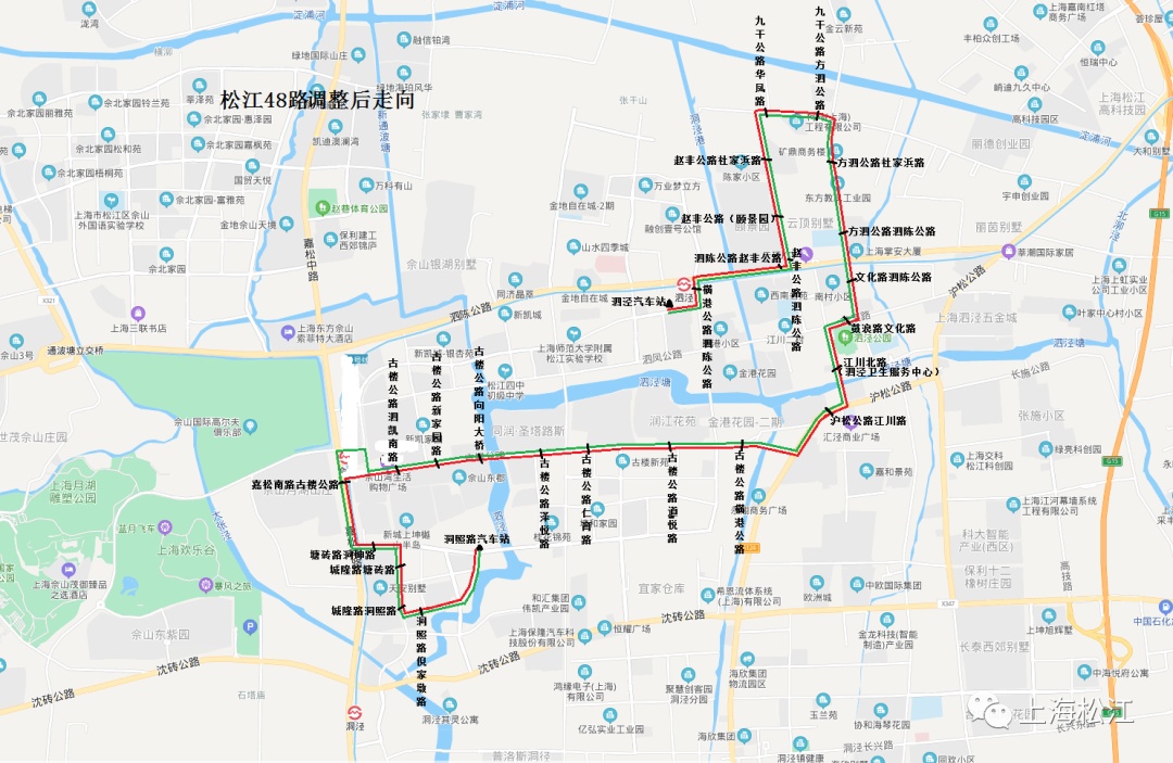调整后走向:(上行)自泗泾汽车站起经泗宝路、横港公路、泗陈公路、赵非公路、九干公路、方泗公路、文化路、鼓浪路、江川路、沪松公路、古楼公路、嘉松南路、塘砖路、城隆路、洞照路至洞照路汽车站。(下行)自洞照路汽车站起经洞照路、城隆路、塘砖路、嘉松南路、佘月路、泗凯南路、古楼公路、沪松公路、江川路、鼓浪路、文化路、方泗公路、九干公路、赵非公路、泗陈公路、横港公路、泗宝路至泗泾汽车站。