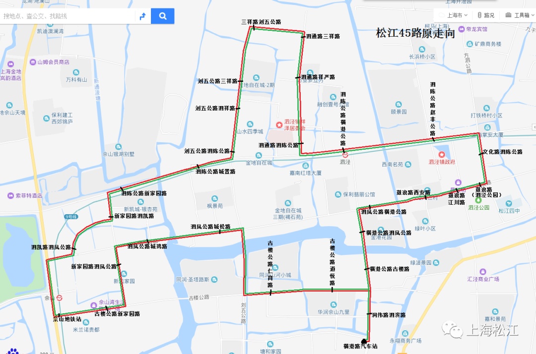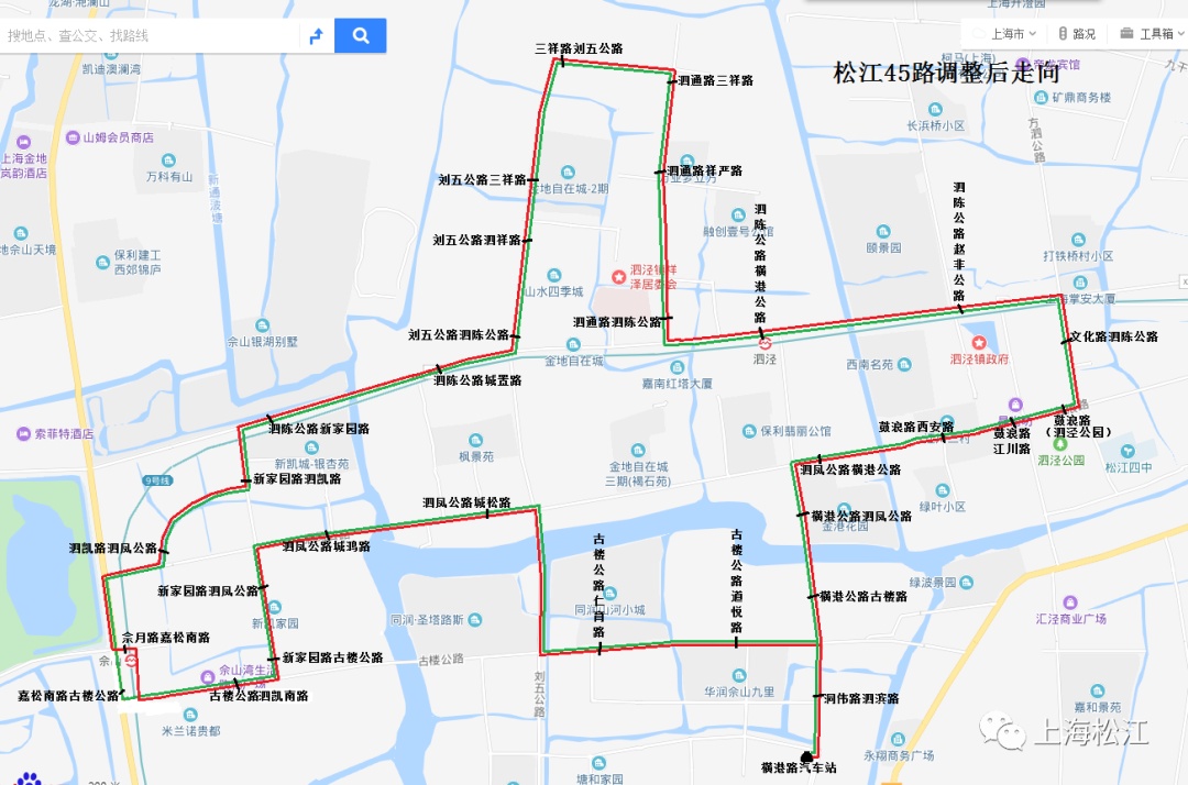 小松从区交通委了解到,为配合泗泾镇道路优化调整,古楼公路(泗凯南路-嘉松南路)调整为东向西单向通行,佘月路(嘉松南路-泗凯南路)调整为西向东单向通行,上海松江公共交通有限公司经营的松江45路、松江48路、松江67路、松江92路、松江94路、松江95路、松江97路、松江98路于2021年10月22日首班车起调整线路走向,具体如下↓
