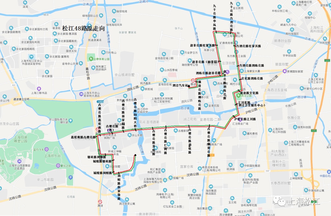 原走向:自泗泾汽车站起经泗宝路、横港公路、泗陈公路、赵非公路、九干公路、方泗公路、文化路、鼓浪路、江川路、沪松公路、古楼公路、嘉松南路、塘砖路、城隆路、洞照路至洞照路汽车站。