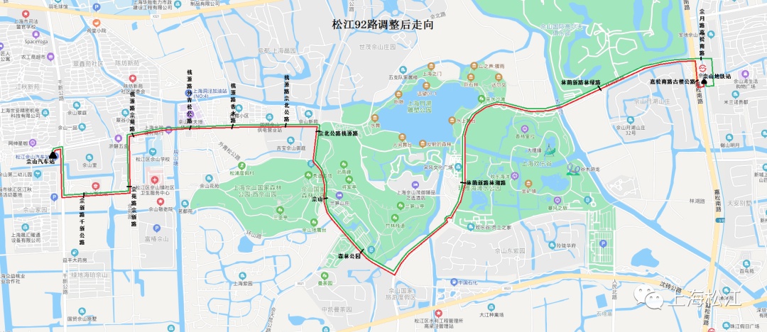 调整后走向:(上行)自佘山地铁站起经嘉松南路、林荫新路、外青松公路、佘北公路、桃源路、佘苑路、佘新路、千新公路、桃源路至佘山汽车站。(下行)自佘山汽车站起经桃源路、千新公路、佘新路、佘苑路、桃源路、佘北公路、外青松公路、林荫新路、佘月路、泗凯南路、古楼公路至佘山地铁站。