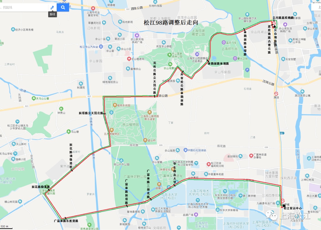 调整后走向:(上行)走向不变,按原线路行驶。(下行)自松江客运中心起经嘉松南路、广富林路、鼎源路、辰花路、辰塔路、沈砖公路、佘天昆公路、外青松公路、林荫新路、佘月路、泗凯南路、古楼公路至佘山地铁站。