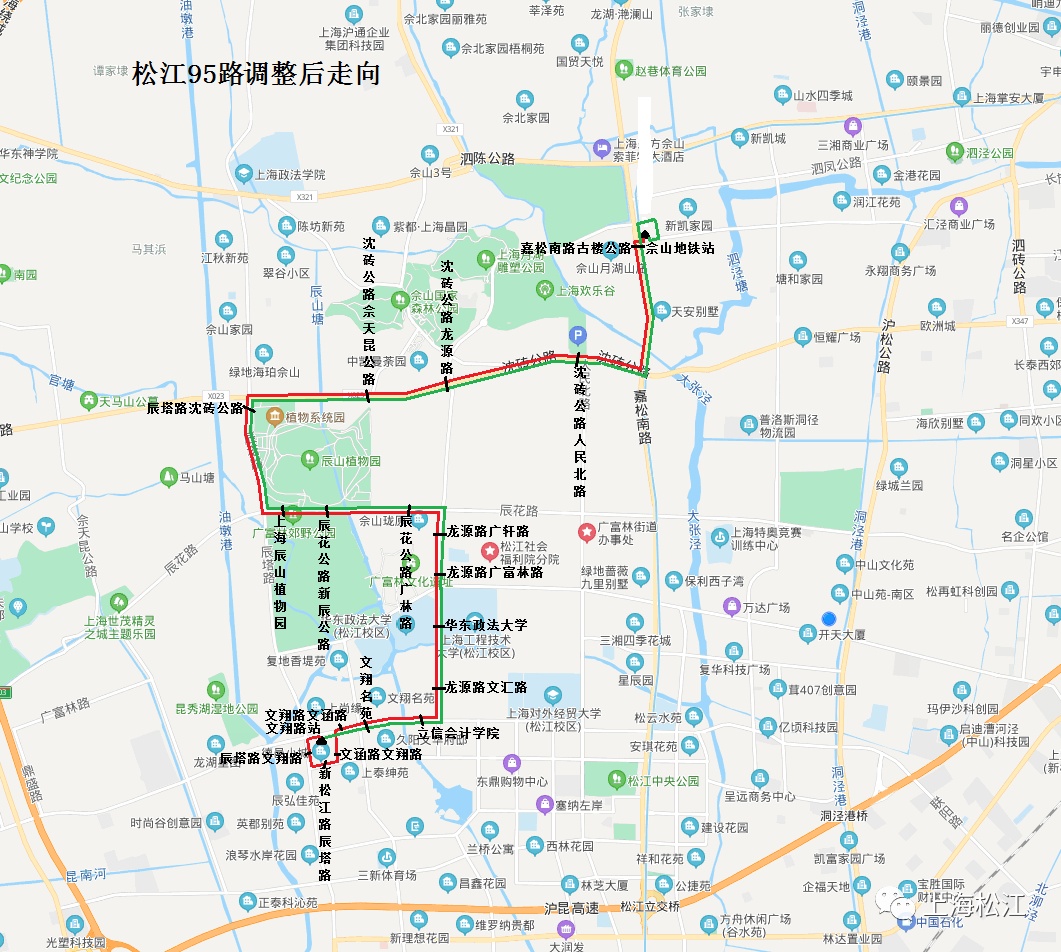 调整后走向:(上行)自强业东路陆宝山路起经青城山路、金白花路、陆宝山路、业煌路、华莹山路、米筛浜路、贡嘎山路、业煌路、小机山路、江秋潭路、高登山路、金白花路、佛山路、泗陈公路、嘉松南路、佘月路、泗凯南路、古楼公路至佘山地铁站。(下行)自佘山地铁站起经古楼公路、嘉松南路、泗陈公路、佛山路、金白花路、高登山路、江秋潭路、小机山路、业煌路、贡嘎山路、米筛浜路、华莹山路、业煌路、陆宝山路、强业东路至强业东路陆宝山路。