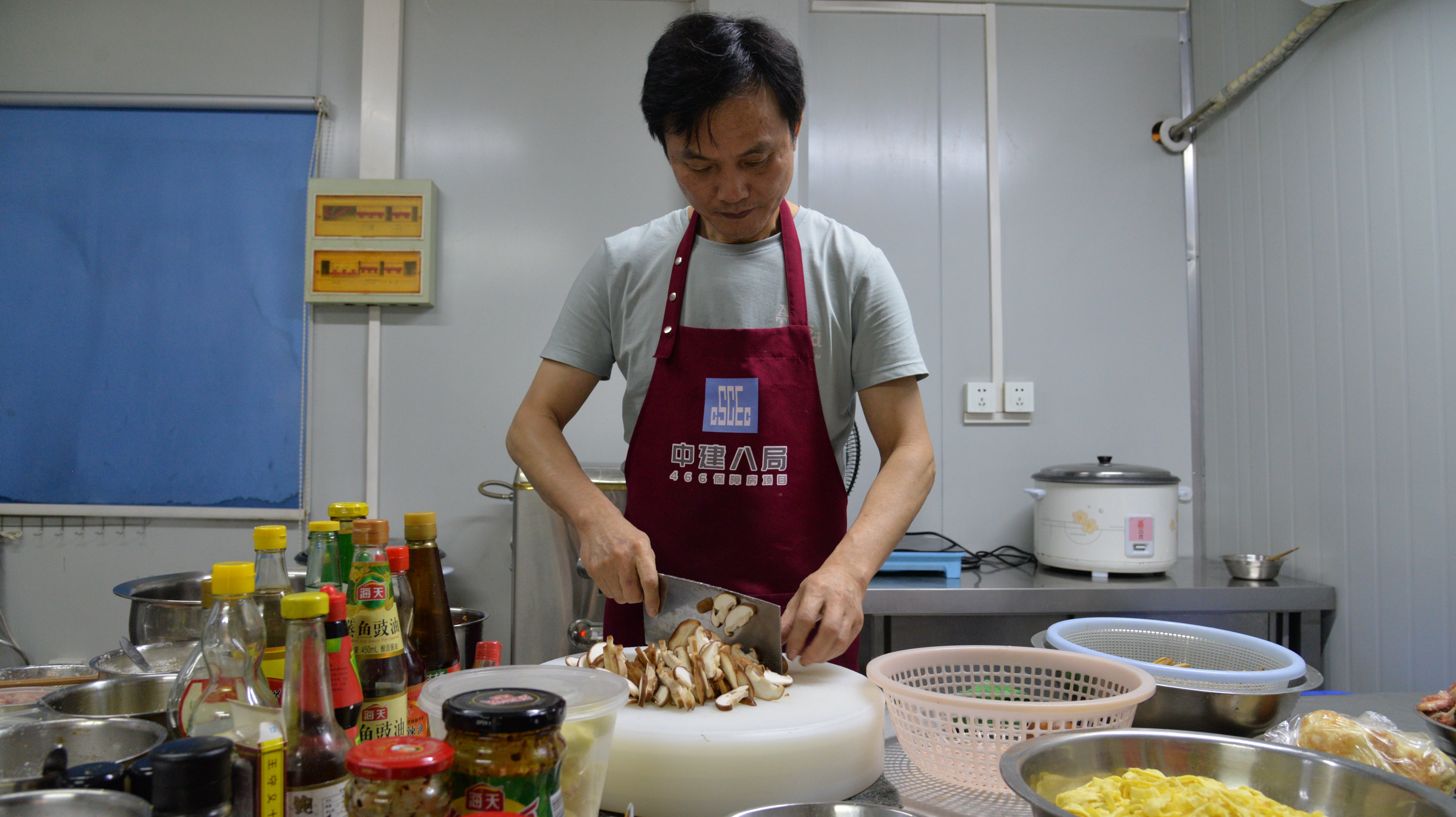 保障房项目厨师段师傅说:“我是湖北咸宁人,项目对面的慧芝湖花园居民区负责人邀请我们外来务工人员观看了红色电影《长津湖》。敬老月里,听说项目党支部和慧芝湖党总支联合举办尊老敬老主题活动,我就想到了湖北特色的蛋花肉丝香菇面很适合老人吃,就主动掌勺当起了大厨,请咱们大宁路街道的独居老人尝尝,让我们建筑工人也表达一份祝福,祝愿老人们都能有一个幸福美满的晚年”。