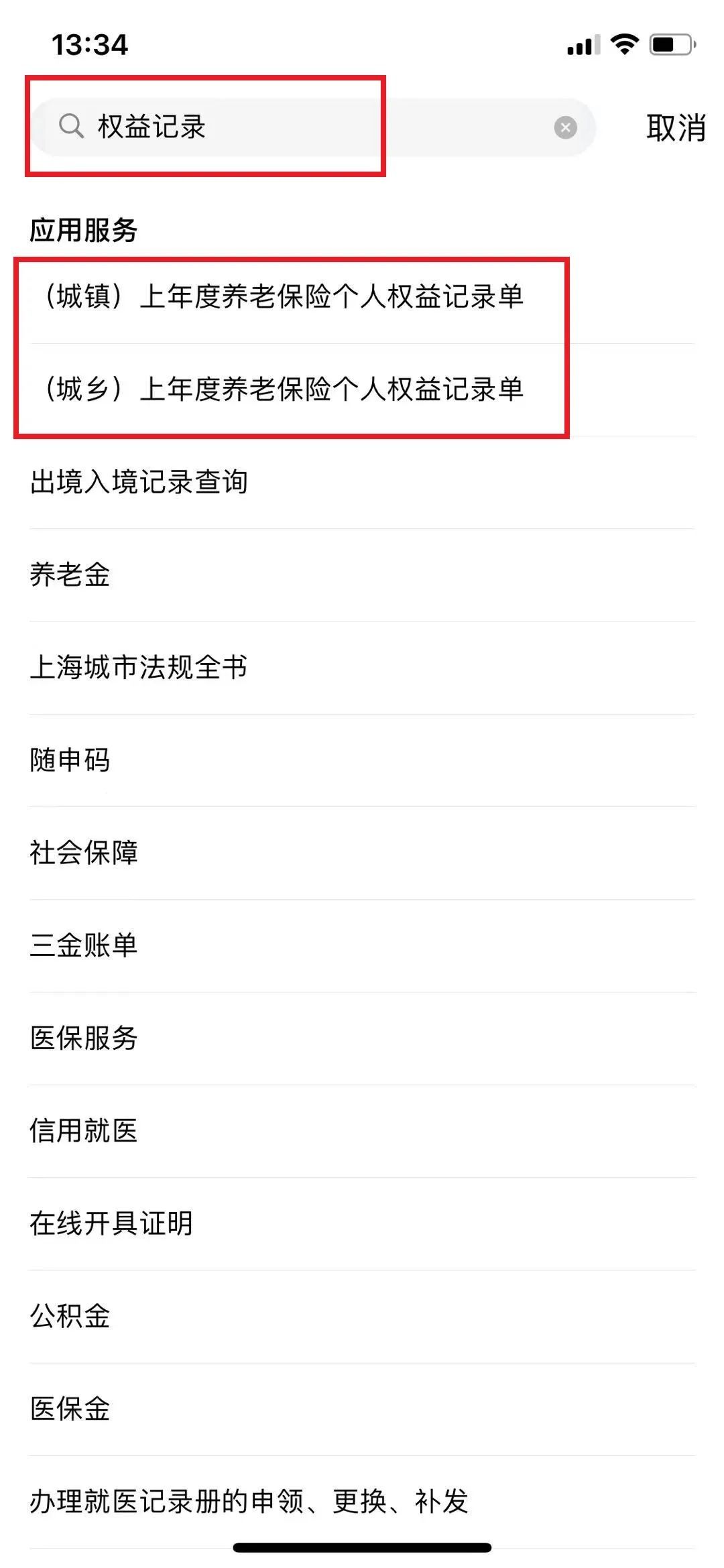 登录“随申办”APP,搜索“权益记录”——选择“(城镇或城乡)上年度养老保险个人权益记录单”进行查询。
