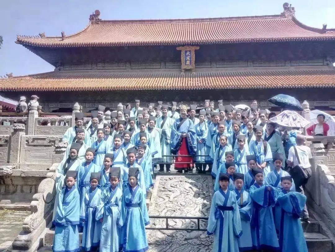 2018年7月,部分国学课堂的亲子家庭们在老师们的组织下,前往曲阜“三孔”,完成了一次有意义的祭孔游学。因同学们都能背诵出《论语》中的三十章,获得了免费参观“三孔”的资格。“在大成殿外,同学们衣冠肃穆,共同背诵《论语·学而》篇的场景犹在眼前,令人印象深刻。”这成为了不少亲子家庭一段难忘的回忆。