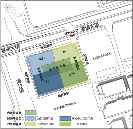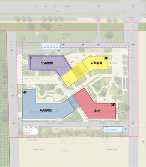 公共卫生中心的功能将被整合为四大部分,分别为业务管理、公共服务、疾控中心实验室及血站,“X”型的建筑体量保证了各部分相互独立又紧密联系。每个功能区有各自的特点,使用对象各不相同: