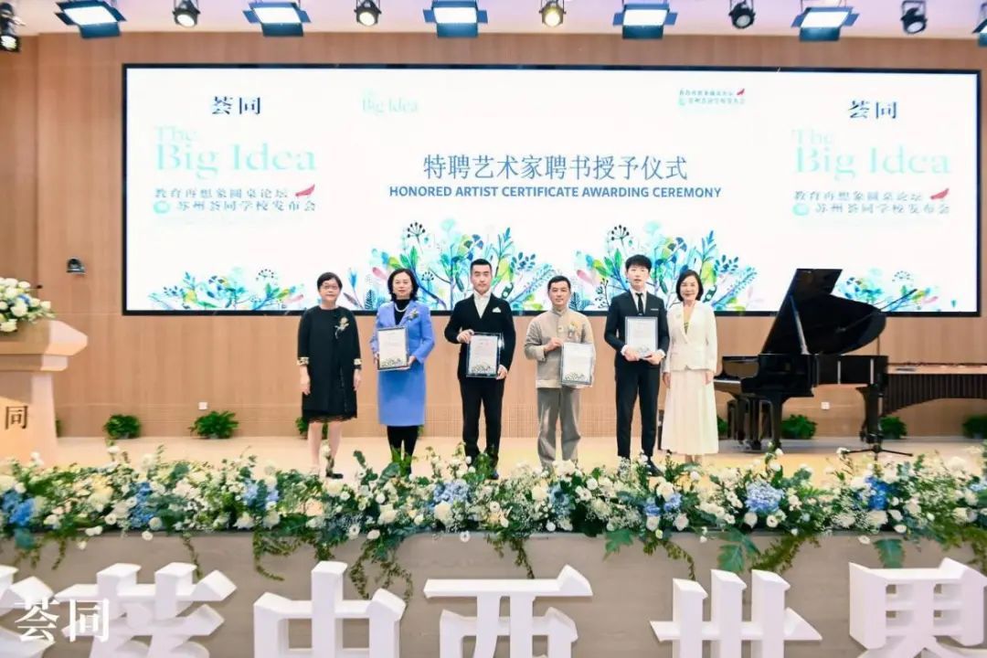 现场,苏州荟同学校为国际著名雕塑家蔡志松先生,中国当代摄影师和视觉艺术家陈漫女士,中国工艺艺术大师蒋喜先生,全球施坦威钢琴演奏家刘骥先生,著名歌手孙楠先生,以及特聘学术顾问,原哈佛校友总会亚太区主任孙玉红女士颁发特聘证书。
