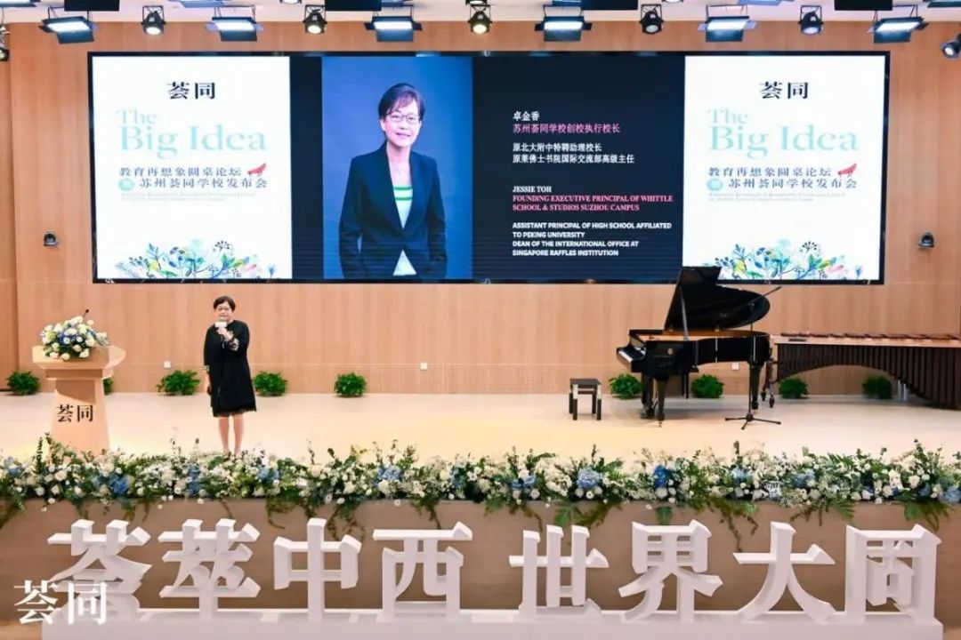 荟同学校中国区总校长、苏州荟同学校创校校长李茵在现场与来宾们分享对荟同立足苏州的美好期待,以及“荟萃中西、世界大同”的宏大愿景。