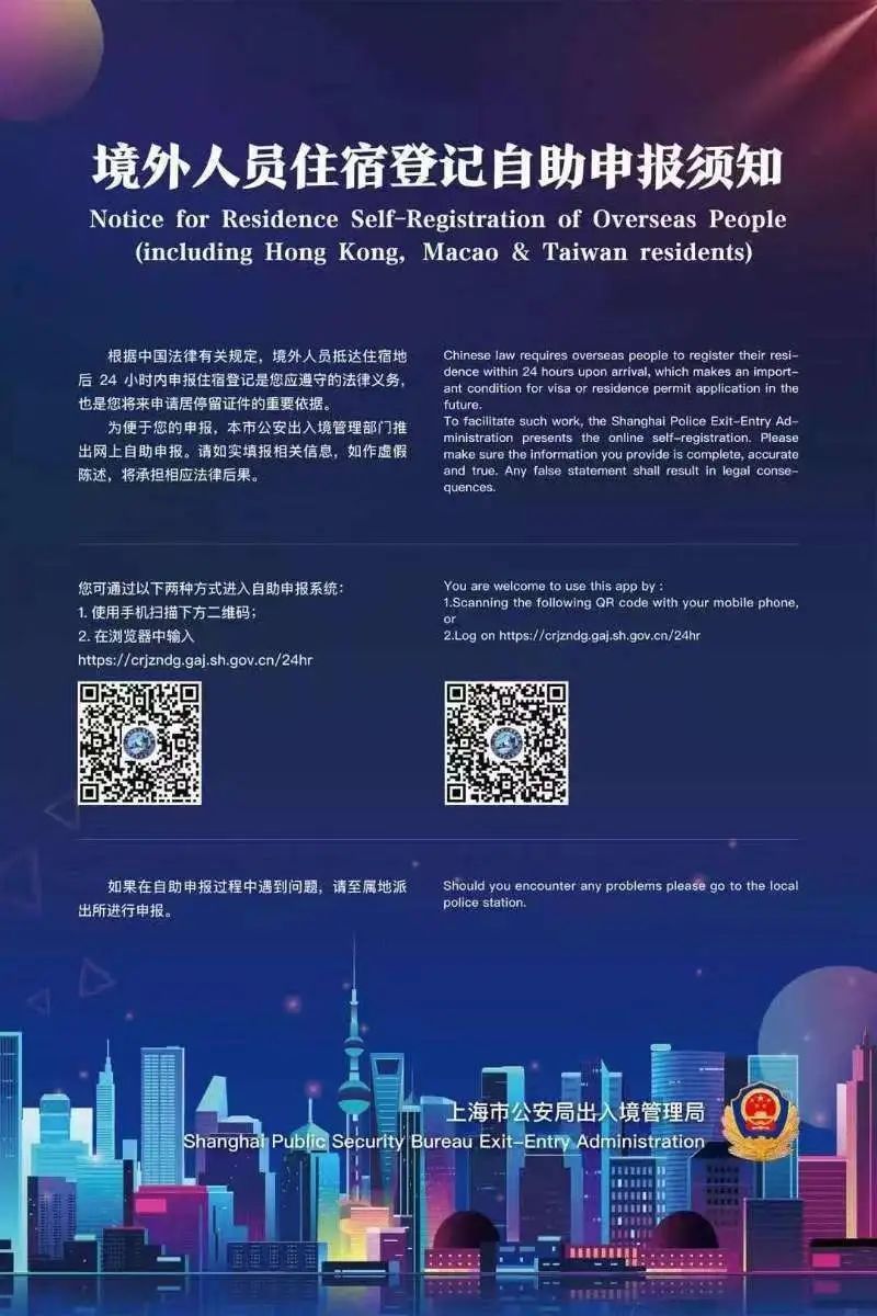 2019年11月,上海市公安局出入境管理局正式在全市范围内启用了“境外人员住宿登记互联网自助申报系统”,系统依托“智慧公安”建设,引入了护照资料页图像识别、电子地图、大数据关联等技术手段,登陆便捷、填报简易、反馈迅速。至此,居住在本市各地区的境外人员不用前往居住地派出所申报临时住宿登记,足不出户即可在线完成自助申报。
