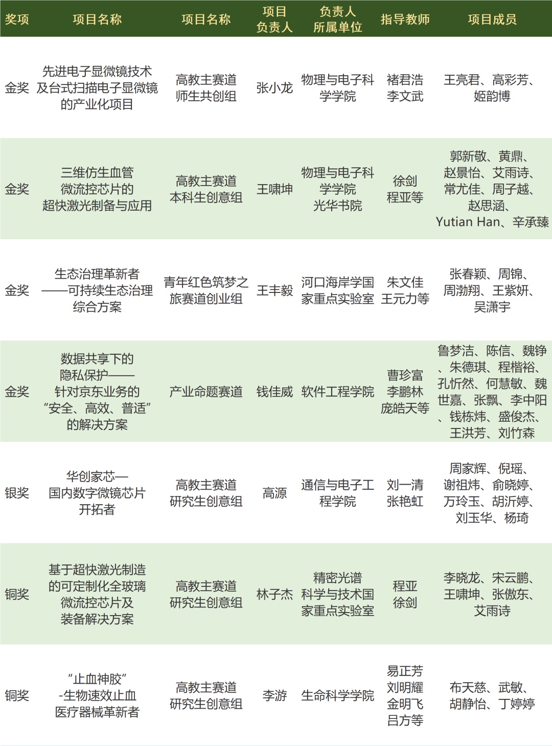 ▲ 获奖项目信息