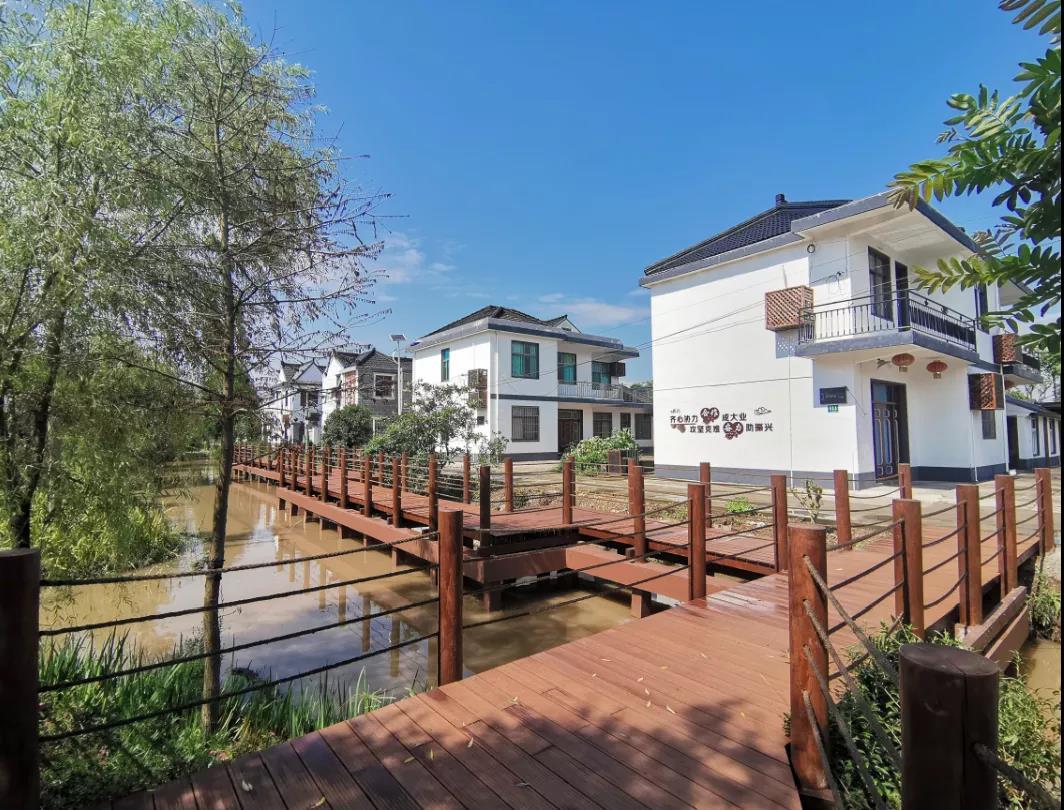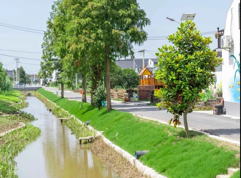 提升公共空间景观。以河长制为抓手,全面实施生态河道治理,落实“三分三包三管”自治管理模式,打响“消黑除劣”碧水保卫战。示范村建设期间,完成1条劣五类河道、6条黑臭河道整治任务,实现农村生活污水处理、农村生活垃圾分类减量、农作物秸秆利用全覆盖。开展80余户花宅景观提升,营造花团锦簇、绿意盎然的乡村景致。在农宅自留地区域,有效利用废旧的木、土、瓦、石、罐等材料,合理布局建设农家“小三园”。拓宽改造村内主要道路,实施黑化升级,种植四季花草。设置河道亲水平台,种植净水植物,打造生态水岸。