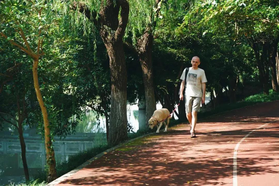 偶尔有外国友人带着汪星人散步,