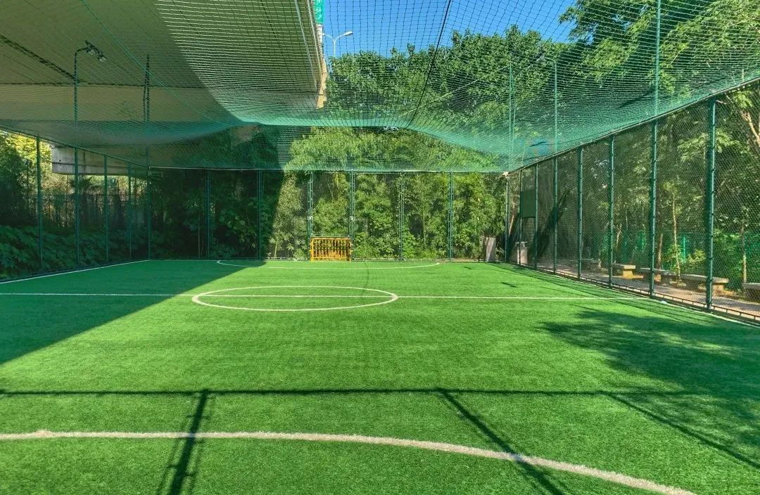 新虹桥中心花园羽毛球场改造内容主要包括旧人造草清除、羽毛球场面层铺设及新羽毛球架安装等。