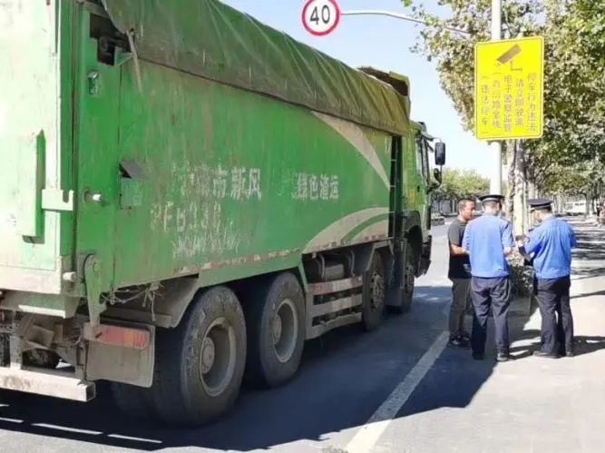 加强扬尘管控,对违反市容管理条规的土方车作出当场处罚,并教育违法当事人。
