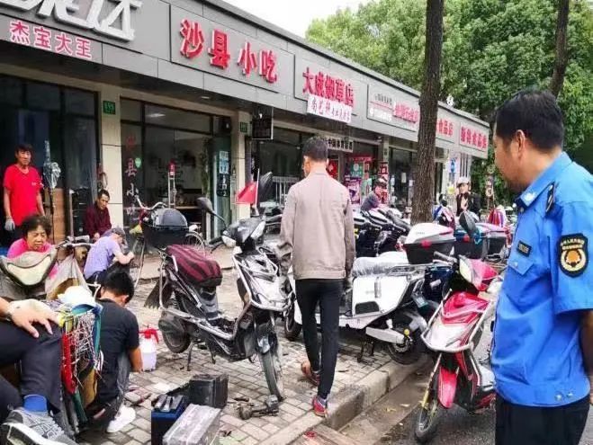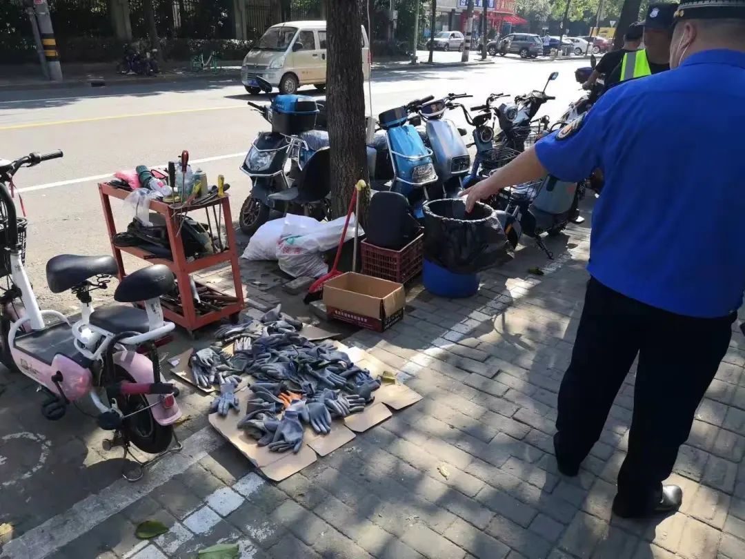 这一边,部分队员正在沿街头便道一路“扫描”,针对占道堆物、跨门经营等现象,队员现场对当事人进行批评教育,要求其立即整改,恢复路面整洁。