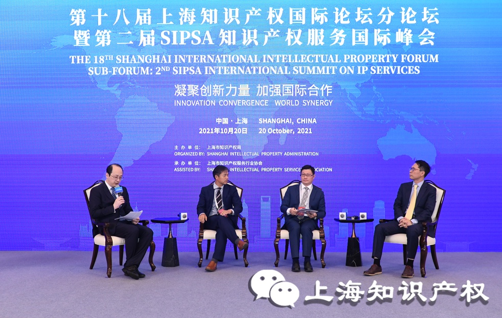 2021年10月20日下午,第十八届上海知识产权国际论坛分论坛暨第二届SIPSA知识产权服务国际峰会在沪举行。本次分论坛由上海市知识产权局主办,上海市知识产权服务行业协会承办,主题为“凝聚创新力量 加强国际合作”,着重围绕人工智能和数字经济时代下知识产权服务行业的发展与合作展开一系列探讨。上海市知识产权局副局长杨慧出席论坛并致开幕辞,世界知识产权组织(WIPO)中国办事处高级顾问吕国强先生出席论坛并做开幕演讲。