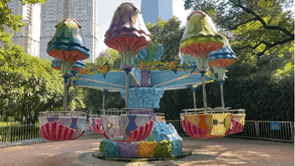 作为中山公园游乐场的新宠儿,逍遥水母不仅名字梦幻,外表也很绚丽。作为旋转类项目,逍遥水母不仅会整体绕圈旋转,每个座位也会进行自转,虽说速度不快,但是也能体验快乐晕眩的感觉,据说坐在里面就像宇航员在遨游太空。