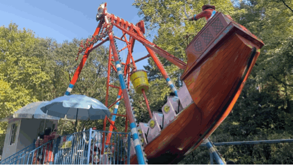海盗船是游乐园的经典项目,中山公园儿童游乐场的海盗船虽然不大,但是坐海盗船该有的乐趣和刺激一点也不少,建议想要体验强烈失重感的朋友坐两头,只是想略微体验一下的朋友坐中间,稍微晃晃不容易晕船~