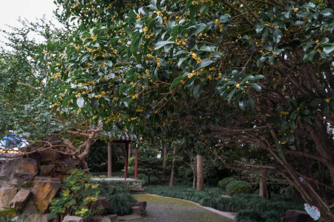 宏泰园种有200余棵桂花树,花苞密密麻麻布满枝头。园内有金桂、银桂、四季桂,还有少量丹桂,今年花期不长,想要赏桂的市民抓紧咯~