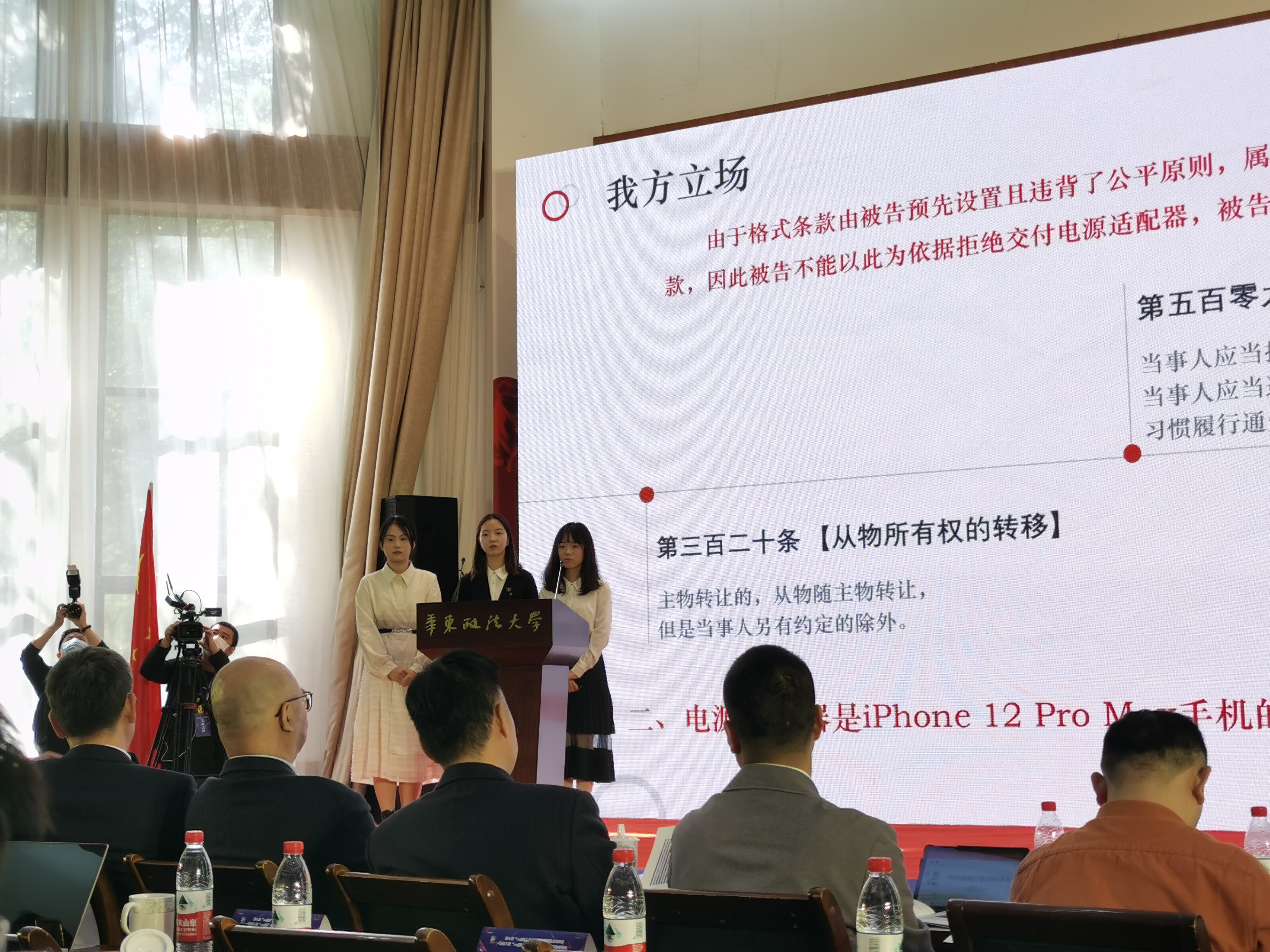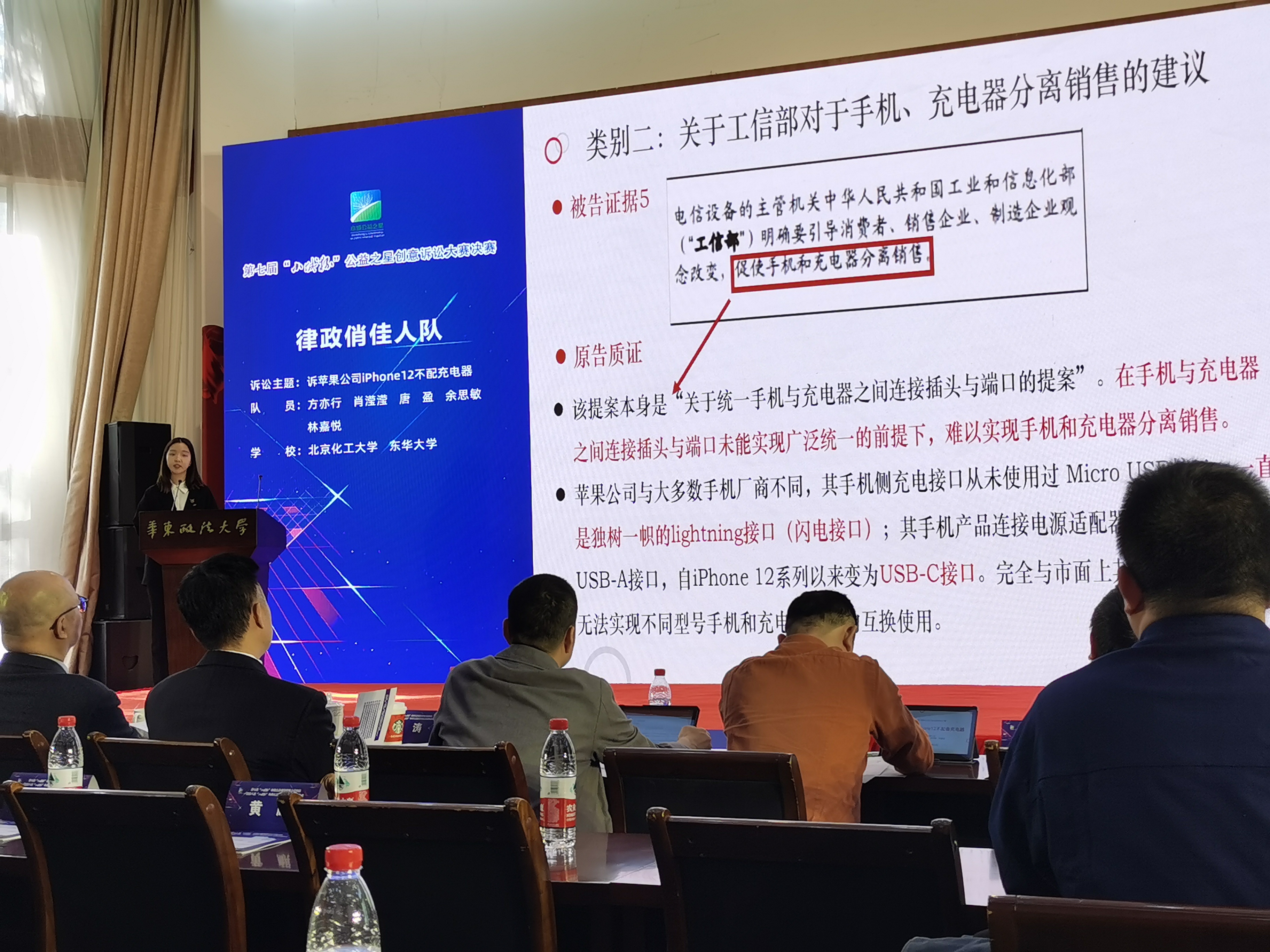 除了《诉“京东健康”互联网诊疗案》,其他案件同样精彩纷呈。如来自上海政法学院的上海名媛并夕夕队《拼多多助力活动“违规吞刀”公司诉讼项目》;来自中国政法大学的非必要不诉讼队的《因疫情退票仍高额收费诉祥鹏航空》;由北京化工大学、东华大学组成的律政俏佳人队《诉苹果公司iPhone12不配备充电器案》等。“队员们在不同国家,常常需要克服时差困难,齐心合力地长时间研究探讨,最终推动诉讼的进程。虽然仍在开庭环节,还未完成全部流程,但我们还是会继续坚持。”律政俏佳人队队员方亦行说。