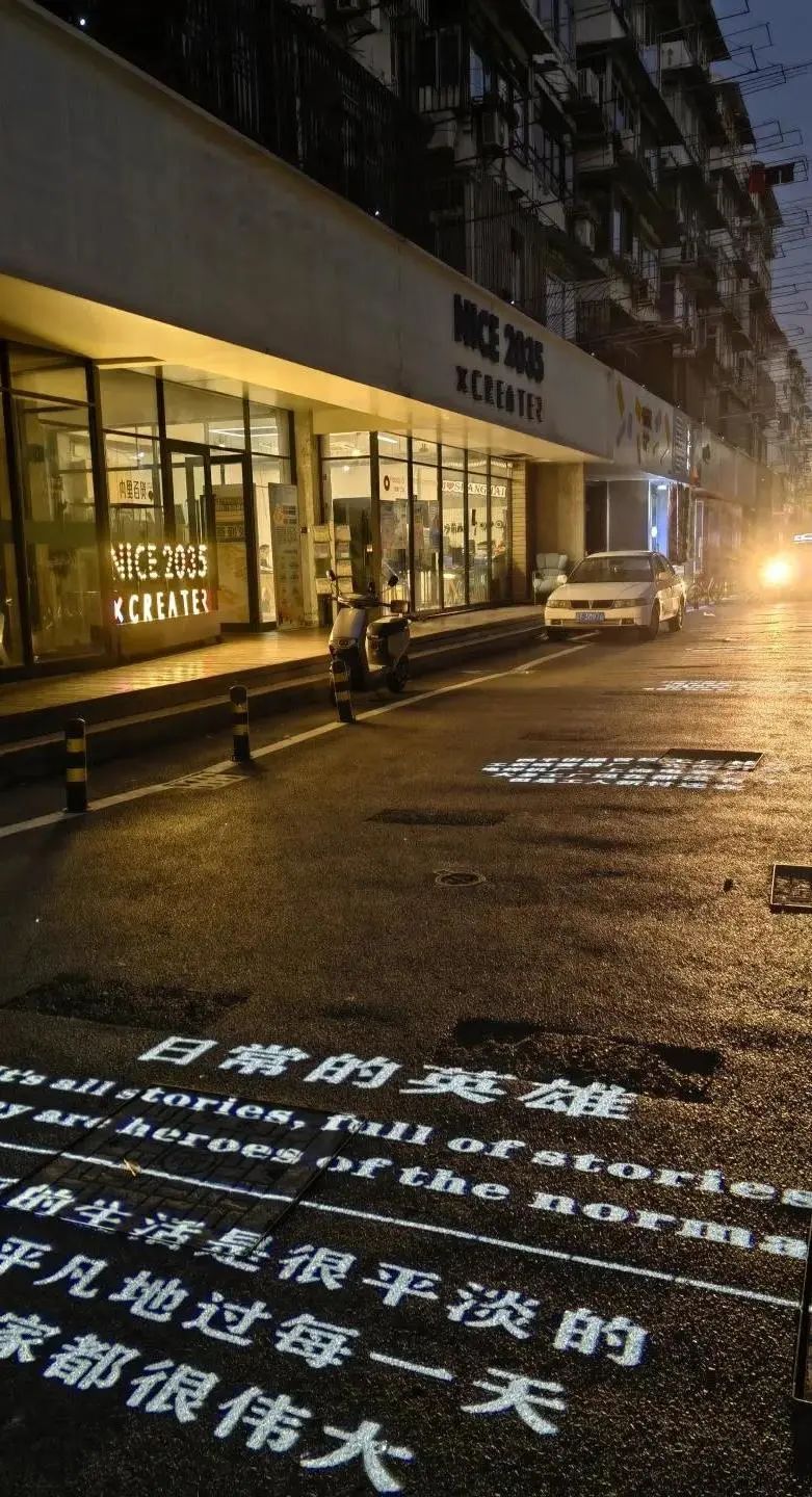行走在四平社区,每走过一段路,都能“偶遇”一个艺术化的空间。鞍山路抚顺路口一排沿街商铺经过改造,变成画着彩绘的睦邻中心,每周都有精彩丰富的活动;苏家屯路短短百米的林荫道上散落着十几个创意雕塑和城市家具,座椅、钟楼、滑梯是社区老老少少共同的“游乐场”;社区菜场旁边,一条小弄堂通往“未来生活原型街”;夜幕降临时,四平路1028弄的“诗歌单行道”,把大家的共同记忆投映在弄堂的地面上……