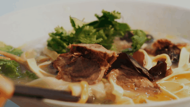 鲜嫩不膳的羊肉是秋季暖胃的最佳食材,高汤熬煮,香味四溢,搭配师傅现拉的宽面,筋道弹牙,一口沦陷。