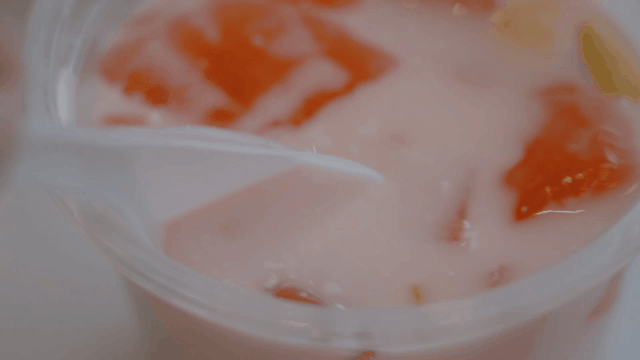 洁白的椰奶,搭配清甜的西瓜、可口的椰果、爽滑的布丁、香脆的花生、香甜的葡萄干,小小一杯,椰香四溢,清甜滋补,还可以养肺润燥。