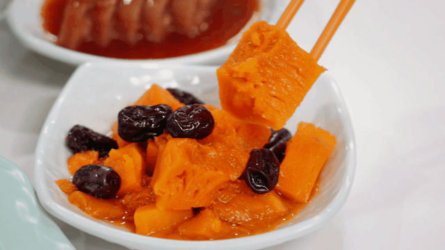 秋日里熟透至金黄的南瓜,与香甜的红枣一起炖煮,口感清甜而不腻,滋补又甜润。