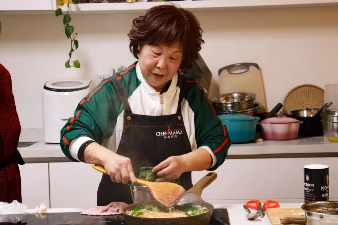上午9点不到,原百灵鸟合唱团成员章阿姨就精神抖擞地来到武宁片区二楼,轻车熟路地走到一个“锅碗瓢盆”样样俱全的开放厨房,把从家里带来的“秘密武器”放进冰箱:“这是我从家里带来的黄油和牛奶,今天的菜能不能成功,就全看它的了。”