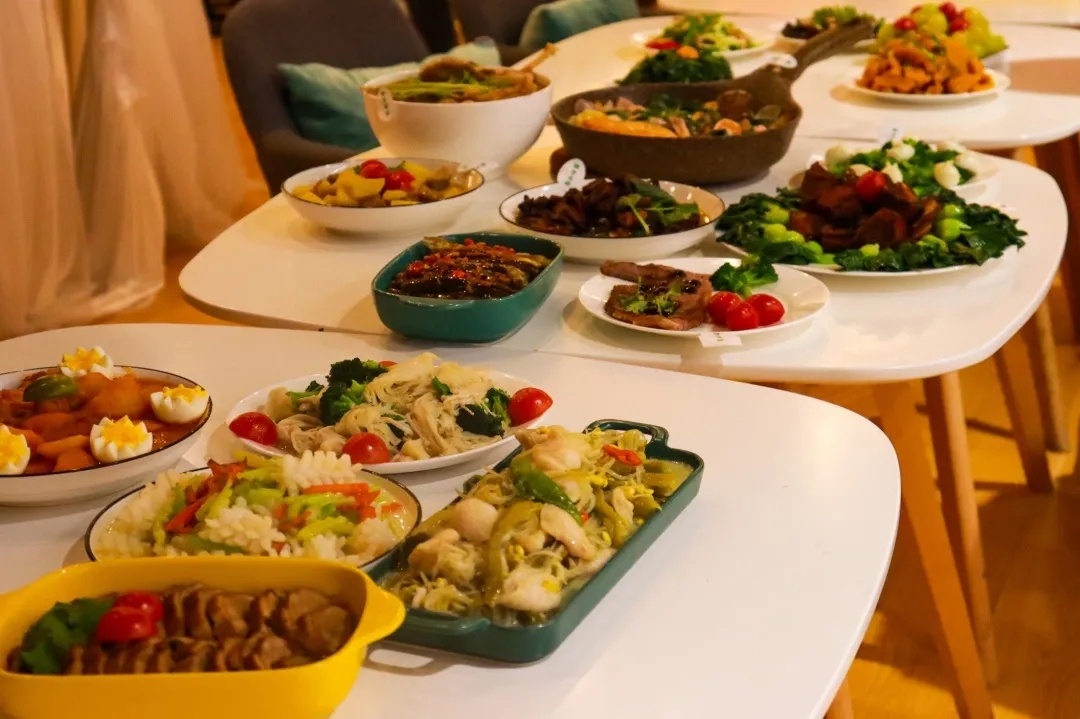 随后,参赛者和亲朋好友围桌而坐,互相分享美食、交流心得,诉说生活点滴。比赛现场不时传来阵阵欢笑声,充满了幸福的味道。