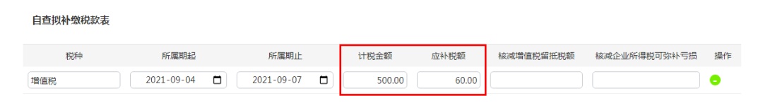 【计税金额】和【应补税额】可进行金额输入(自动保留两位小数)。