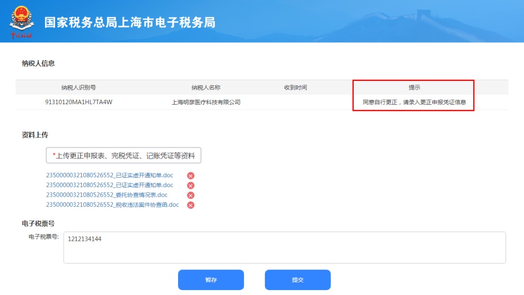 这次提交后仅能下载附件,无法上传与删除,【电子税票号】无法继续编辑。