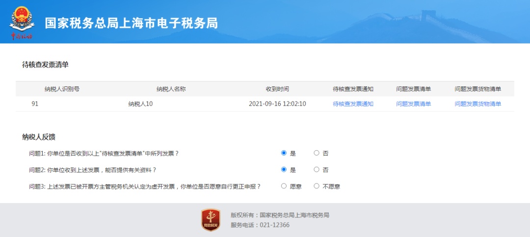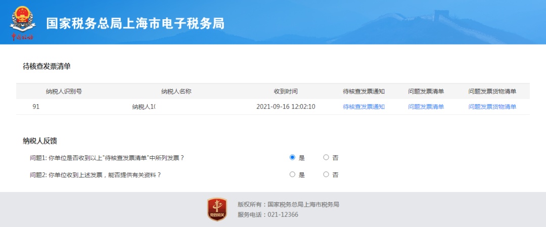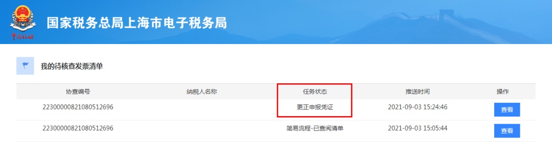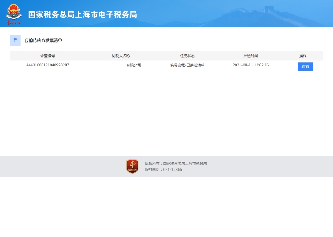 在【我的待核查发票清单】可以查看到需要协查的列表,列表包含协查编号、纳税人名称、任务状态、推送时间、操作,点击【查看】可以查询【待核查发票通知】、【问题发票清单】、【问题发票货物清单】的具体内容的。