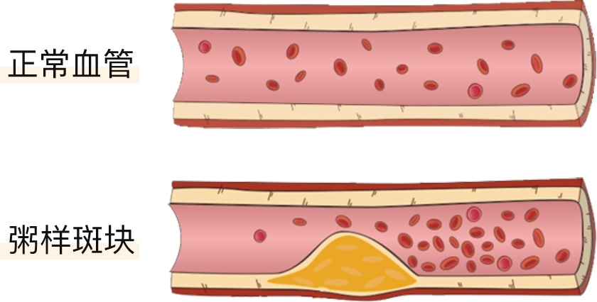 衰老、高血压、吸烟、糖尿病等会使血管壁受损,血脂堆积,形成斑块,使血管变窄。