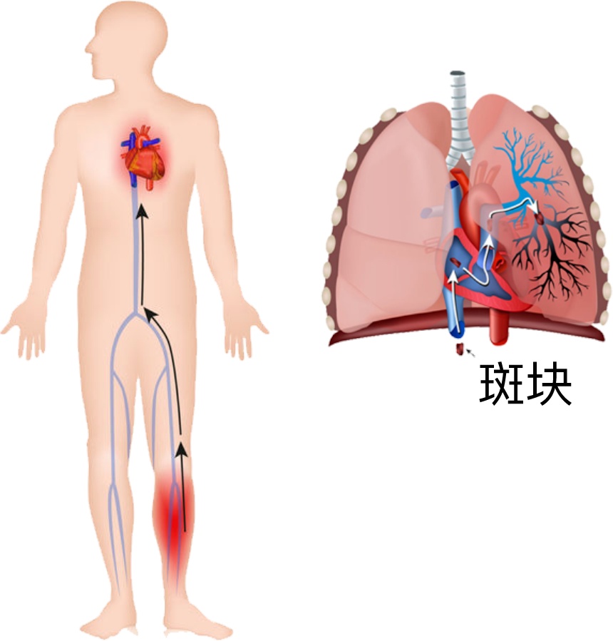 ● 堵在肺部=肺栓塞
