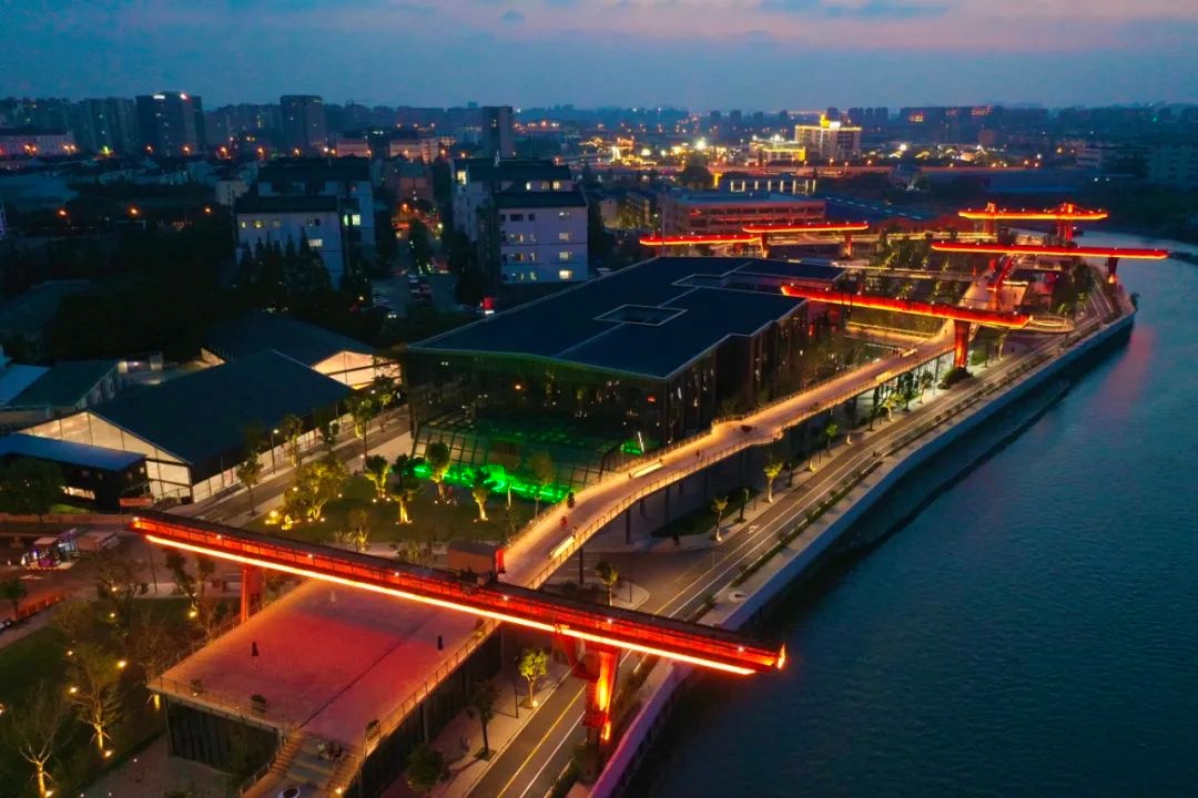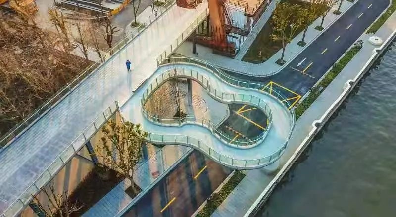 漫步在这座空中长廊上,一边是近百米宽的吴淞江,一边是经过改造,造型新颖别致的老仓库、老厂房以及大片的绿化,绝对是一种心旷神怡、思绪放飞的体验。