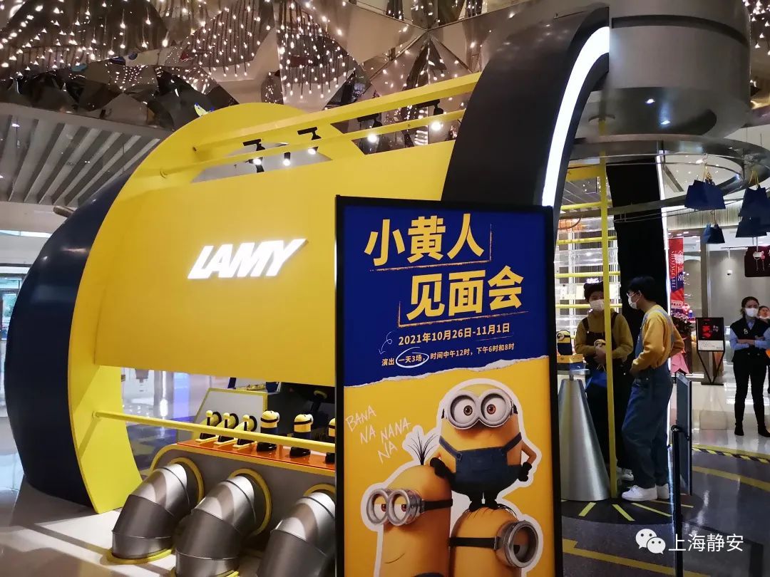 新品展示区另一边的一个标志装置,则以LAMY流水线工厂为灵感来源,结合小黄人的元素模拟了联名产品的整个生产过程,走进现场,有一种来到了小黄人沉浸式工厂的既视感。