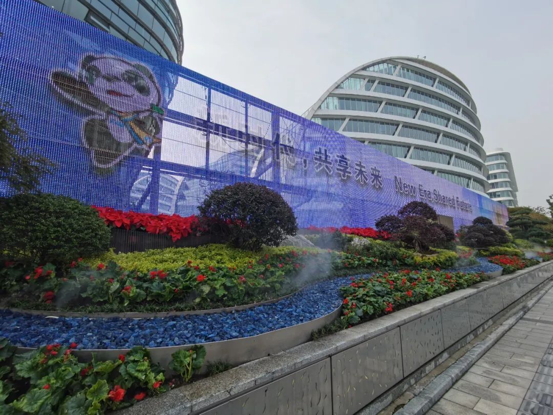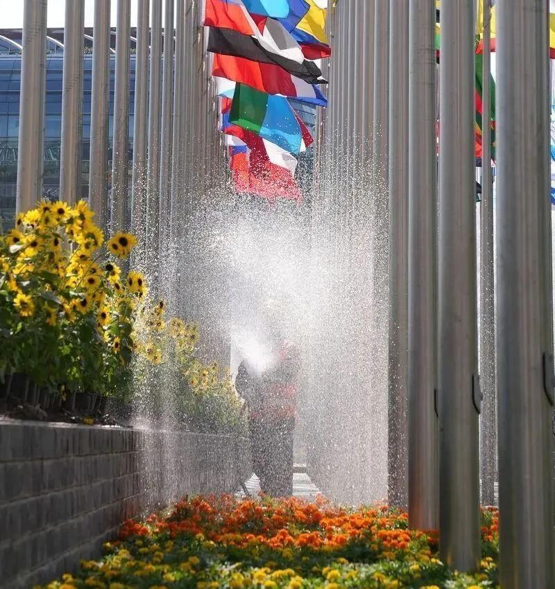 “河流”部分的土建也做了翻新整理优化。“现代城市花园”则优化了植物品种,从品种“千日红”变成“一串红”,更显喜庆,同时对灌木进行二次整形修剪,力求在展会期间达到最好的景观效果。