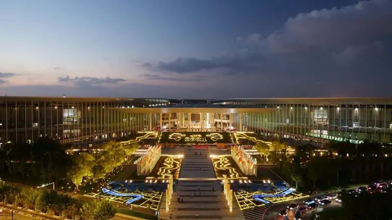 另外,南广场的最后一组进博会景观灯具也已安装完毕。据工作人员介绍,本届进博会南广场景观灯光设计结合花卉造型和脉络走向进行了优化,整体效果得到了进一步提升。