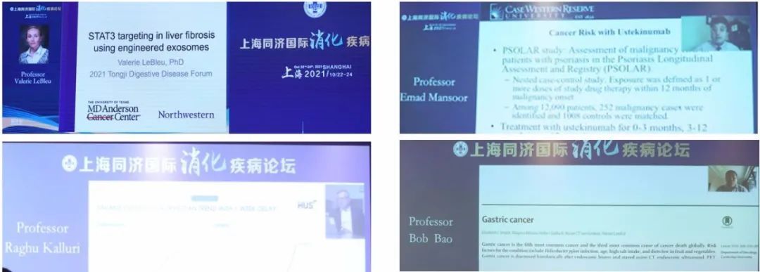 在学术交流环节,中华医学会消化分会前任主任委员杨云生教授、中华医学会消化分会候任主任委员唐承薇教授、中华医学会肝病分会主任委员徐小元教授以及各省市消化、肝病领域专委会主任委员、副主任委员等专家依次做了大会报告和分会场报告。来自美国MD Anderson的Kalluri教授、Lebleu副教授,克利夫兰医学中心的Dr. Emad Mansoor和Dr. Hao Zhang,以及来自澳洲悉尼大学医学院的Prof. Bao Bob等国际专家在线上做了专题报告。会议内容新颖、亮点突出,与会代表纷纷表示受益良多。