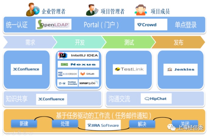 一是建设管理支撑体系。通过自研企业级全生命周期软件开发管理平台,实现数字化业务与ISO9000、CMMI、ITSS和ISO27001等各体系标准的深度融合;引入最前沿的DevOps系统方法论,实现高效敏捷开发、快速迭代、持续集成和持续交付。
