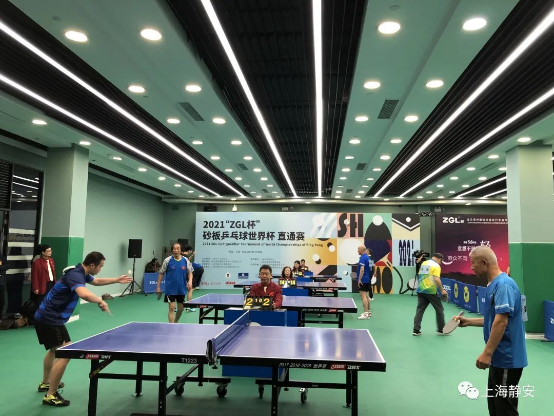 2021“ZGL杯”砂板乒乓球世界杯直通赛在静安区体育馆乒乓球馆举行。来自华东地区的96名砂板乒乓球爱好者参加本次赛事。这也是高等级砂板乒乓球赛事连续第三年落户上海。国际乒联终身名誉主席徐寅生、中国乒协副主席李一冰出席开幕式。上海籍乒乓球世界冠军郑敏之为比赛开球。