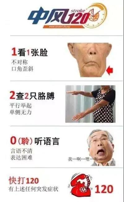 根据“中风120”口诀识别脑卒中早期症状简便有效。