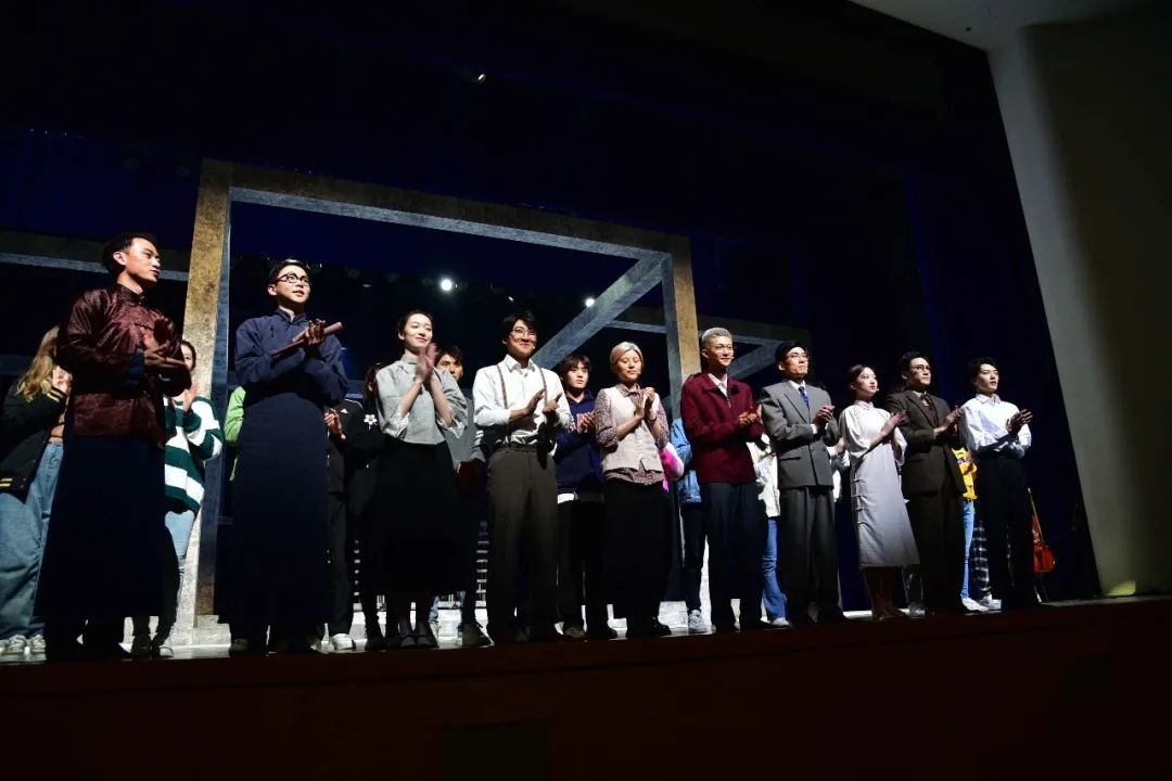 最后的排练过程也非常顺利,演员都是我曾经教过的学生,他们早就期待演出这部戏,建组之前每个人都自觉做了很多准备,所以排练过程其实是一个互通有无、互相交流和学习的过程。虽然他们最大也不过24岁,最小的才20岁,但是他们认真、严谨、专业,每天都在向那些曾经的“大家”靠近一些,他们还要挑战一人分饰多个角色,比如第一场还是钱穆,第二场就摇身一变成了林家翘。这种扮演难度,就算是让一个成熟有经验的演员来做,也要花费很多功夫,更何况他们还都是刚刚毕业甚至还没有毕业的表演系学生,孩子们不知道为此付出了多少努力。一分耕耘一分收获,当谢幕的掌声响起来的时候,每一个演员脸上都写满了幸福的微笑,他们每个人都在说,“值得!”