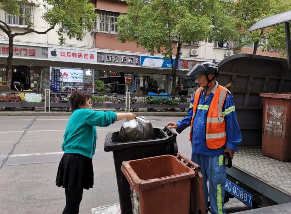 沿街商铺定时定点收运垃圾(非疫情期间拍摄)